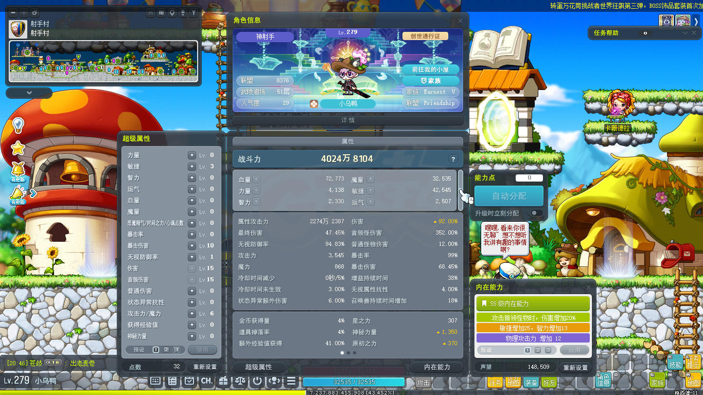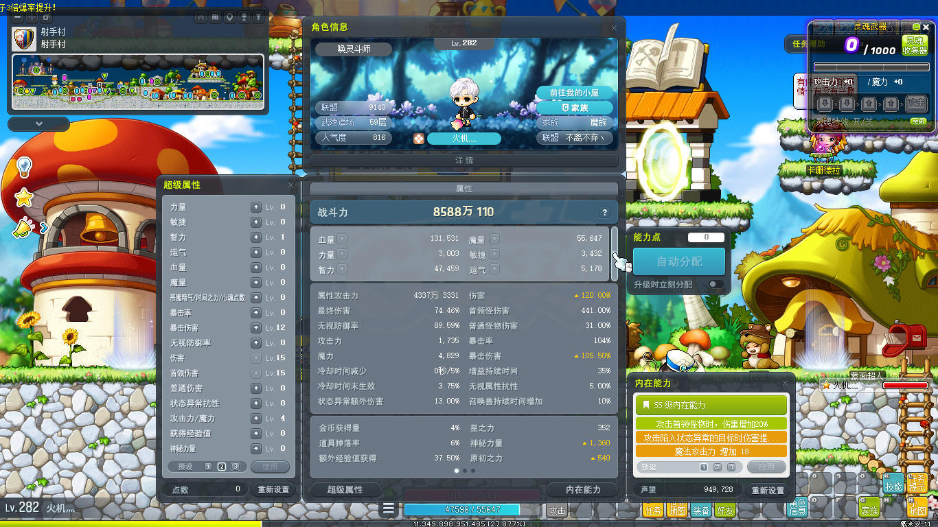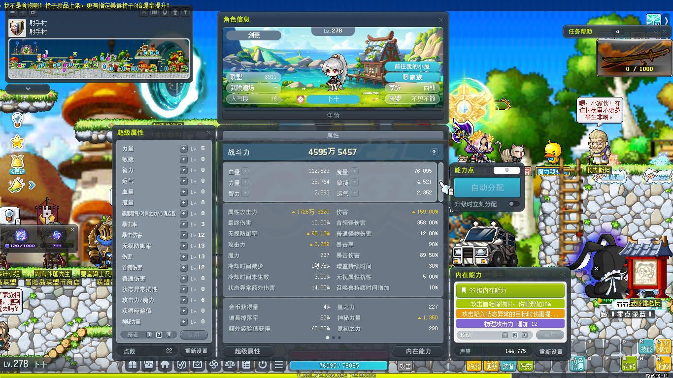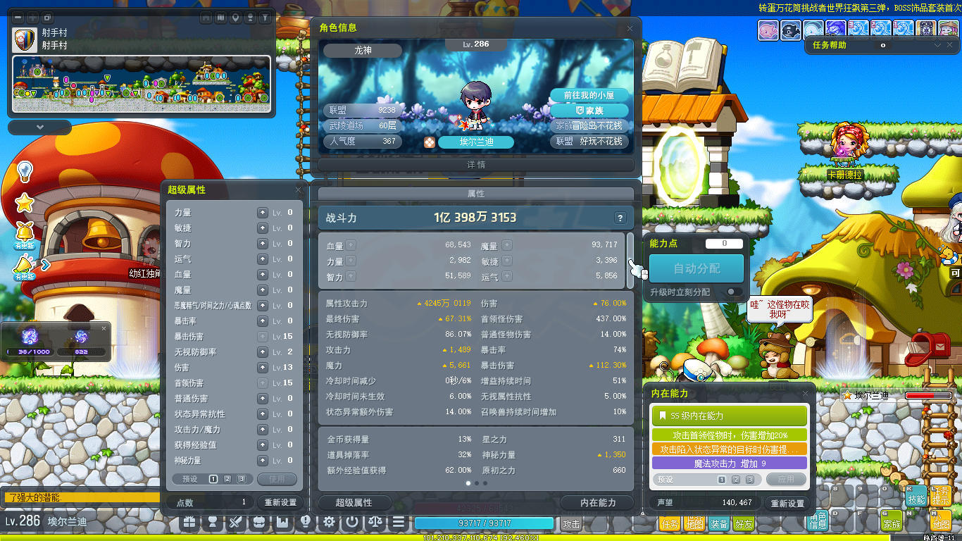 [英雄 287级]3 p宠物 武器增益4 4S创世纹章 6爆率戒指 9080联盟 6转进度高