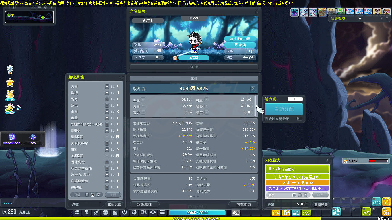 [杀星 50级]T0杀星,暗龙短老千长15,精百全15,千夫首饰套,塔弓