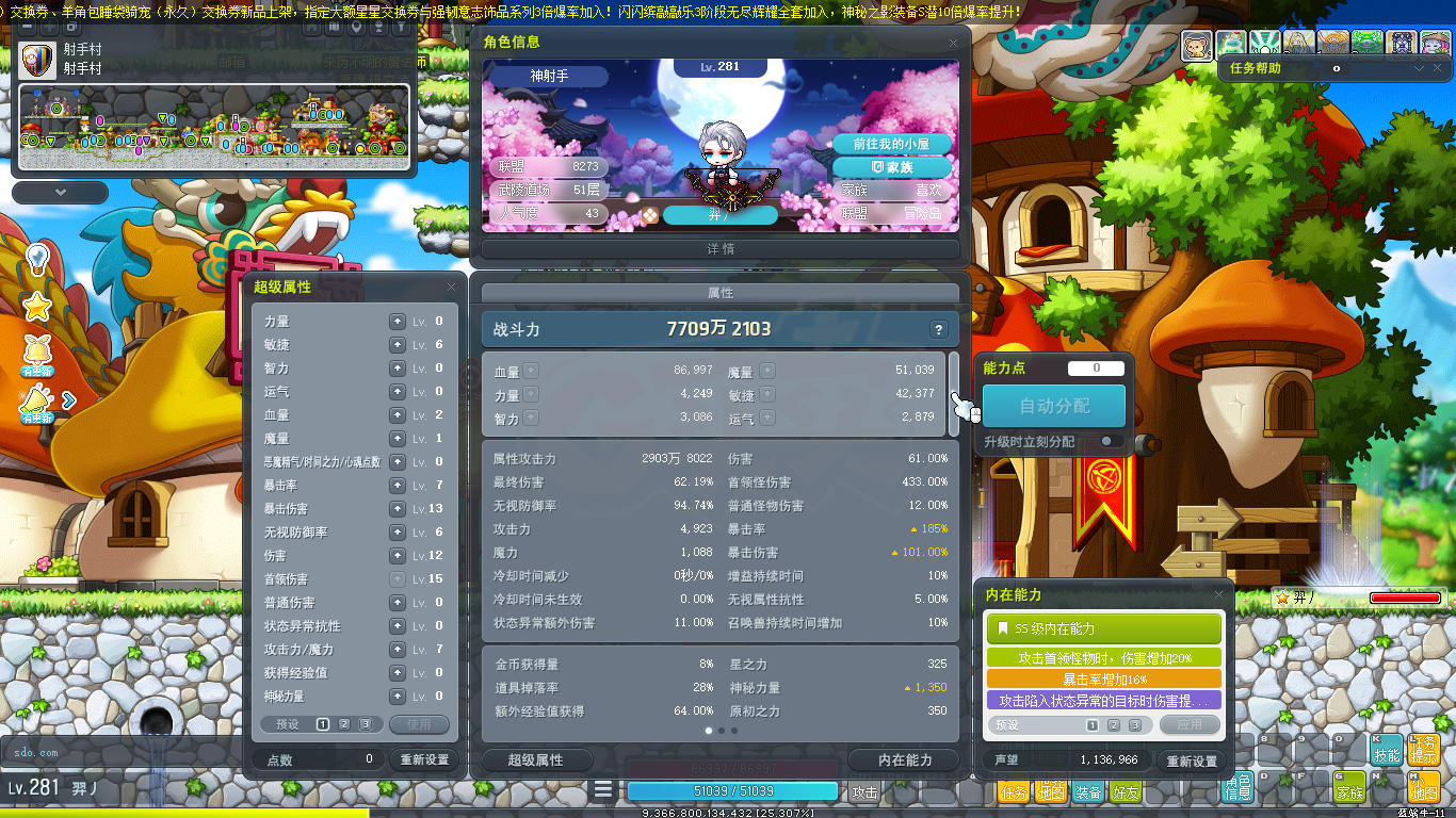 [神射手 287级]二字ID云朵闭嘴花瓶P宠面板双休 2.e战力9000联盟底子号