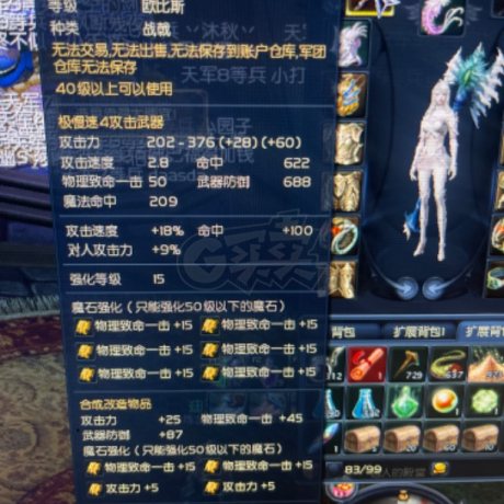 [剑星 40级]卡级剑星,武器12,有4个十夫首饰,有2200万基纳,还有4.5万OBS