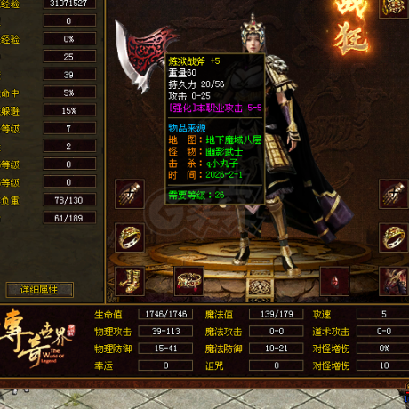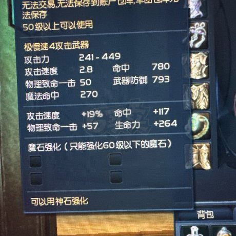 [战士 49级]全身强4,武器强5,攻速6,输出战