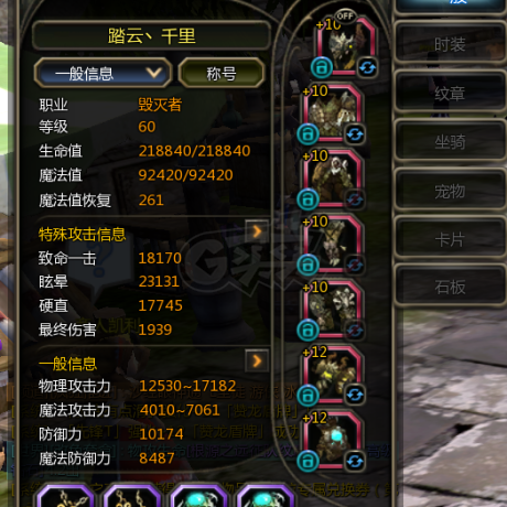 [火舞 100级]9级胸针,14L一老刻印1狂暴1空虚,命运10古龙主副