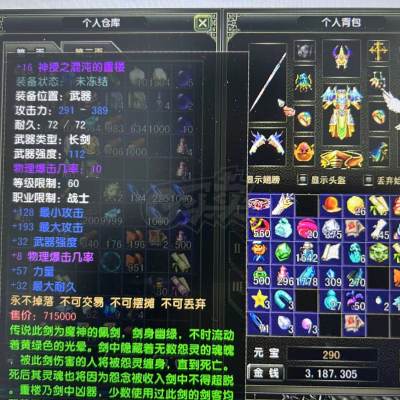 账号 [战士 筑基期10阶]炎天84级战士80级*16武器其余12.14.神头*神手*神脚*神项链