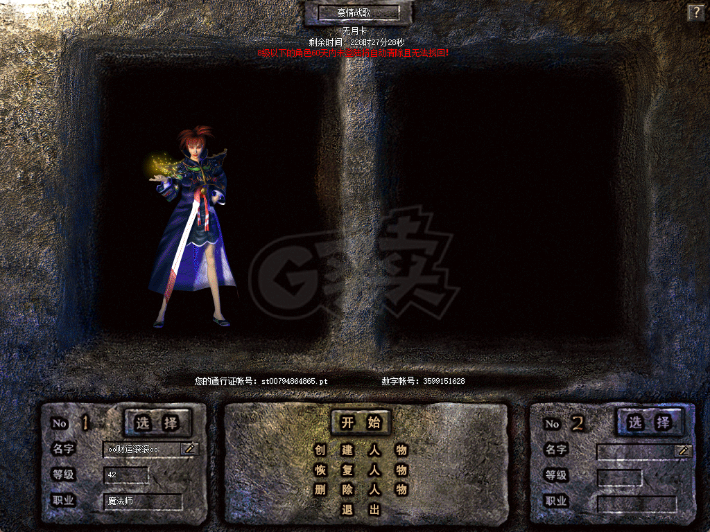 ![热血传奇怀旧版-账号-[法师 42级]1个月新号,5吸血3孔,游戏时间还有200多小时,8小时双倍也还有4张,可玩性高。](https://profile.gmmsj.com/oss/image/goods/2026-01-01/94b3b249b498481c82e34583ca4a7729-1767256272337.png)