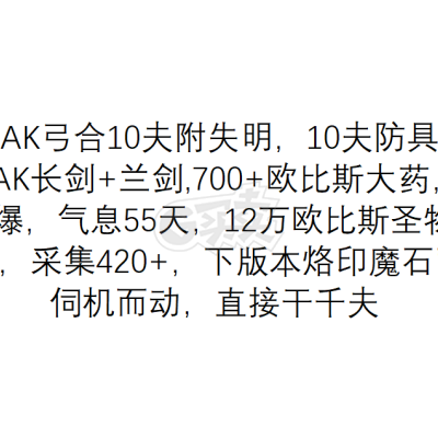 账号 [弓星 50级]50级潜力弓星,14AK弓合10夫附失明,10夫防具全套13*10夫全套首饰,绝版时装