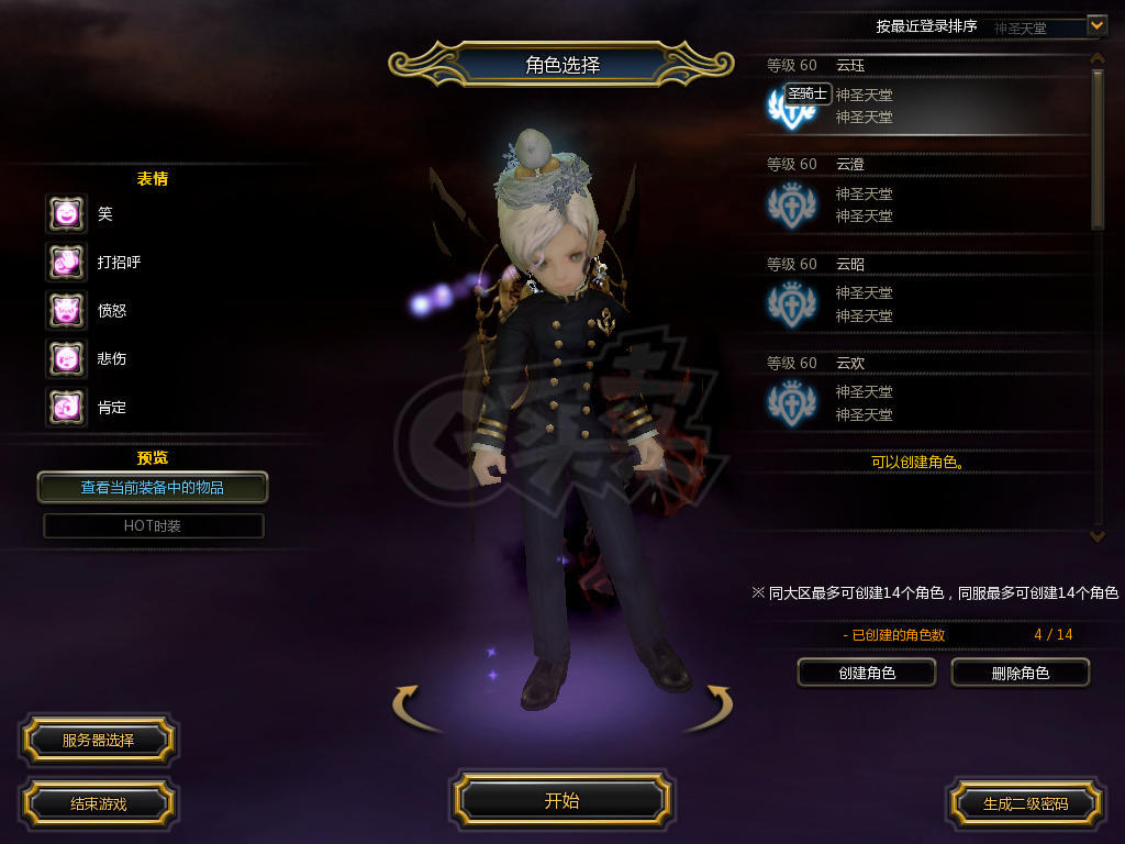 游戏区服:怀旧大区-1服-神圣天堂